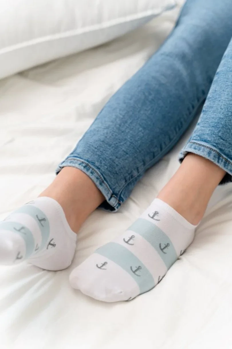 Stopki damskie w marynistyczne wzory. Wykonane z cienkiej i delikatnej przędzy, przewiewne, szczególnie polecane wiosną i latem.