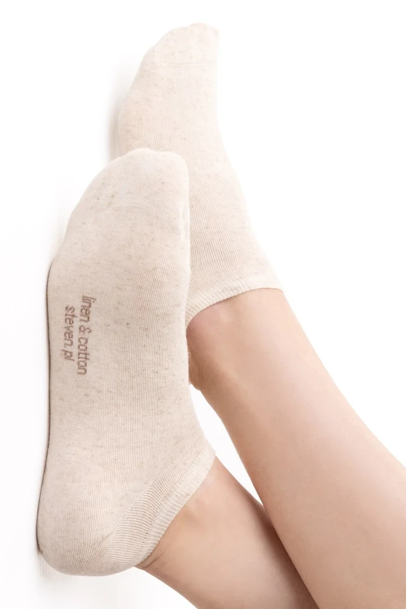 Stopki z lnem i bawełną to idealny wybór dla kobiet i mężczyzn, którzy cenią sobie komfort, świeżość i naturalne materiały. Wykonane z wysokiej jakości mieszanki bawełny i lnu, zapewniają doskonałą przewiewność, skuteczne odprowadzanie wilgoci oraz uczucie suchości przez cały dzień. Dzięki właściwościom lnu skóra pozostaje świeża, nawet w upalne dni. Bezszwowe łączenie i delikatny, bezuciskowy ściągacz gwarantują wygodę oraz idealne dopasowanie do stopy. Te lekkie, oddychające skarpetki sprawdzą się zarówno na co dzień, jak i podczas aktywności fizycznej.