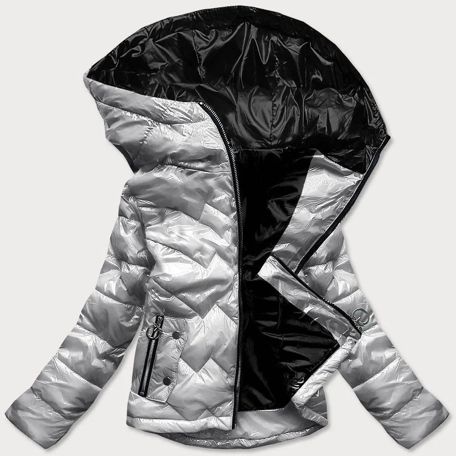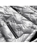Stříbrná prošívaná dámská bunda s kapucí (B9562)