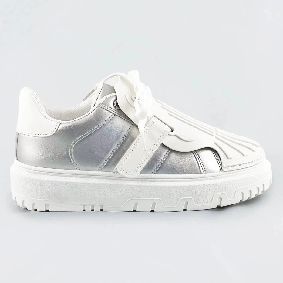 Stříbrno-bílé dámské sportovní boty se zakrytým šněrováním (RA2049)