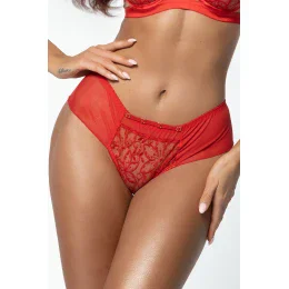 Červené kalhotky brazilského střihu způsobí, že se každému, kdo na vás pohlédne, zatočí hlava vzrušením. Přední stranu kalhotek zdobí květinový vyšívaný vzor, který dodává stylingu lehkost. Boky a hýždě jsou mezitím zahaleny do měkkého a pružného tylu a horní část kalhotek zdobí zlaté ornamenty, které celému kompletu dodávají lesk a rafinovanost. Materiálové složení: polyamid 67 %, polyester 24 %, bavlna 6 %, elastan 3 %