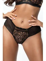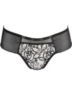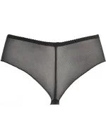 Kalhotky vyrobené z jemného černého tylu jemně obepínají tělo. V přední části béžová tylová vsadka zdobená ažurovou výšivkou vytváří na pokožce zajímavý efekt připomínající tetování. Široký, pohodlný pás zajišťuje dokonalé přizpůsobení a celodenní nošení.