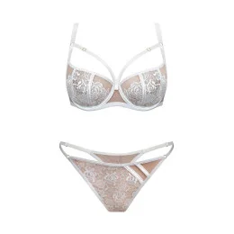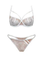 String z bílé látky, která je podšitá béžovou síťovinou, boky tvoří tenká nastavitelná ramínka