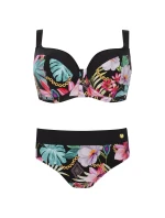 Dvoudílné plavky -vyztužená mísa s kosticemi - podprsenka z barevného mikrovlákna s květinovým potiskem - doporučeno pro velké poprsí - nastavitelná, neodnímatelná ramínka - zapínání na kovovou sponu - klasické, vzorované kalhotky, plnější - podšité vrstvou látky- odolné vůči chlóru
