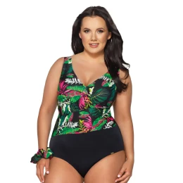 Egzotycznie ukwiecony SKJ 56 to świetna alternativwa dla strojów dwuczęściowych. Dwudzielna kompozycja składająca się z wysmuklającego biodra czarnego dołu i kwiecistej góry wspartej na szerokich ramiączkach odciążających plecy. Wszyte w konstrukcję stroju miski typu kopa solidnie utrzymują biust w ryzach, nie pozwalając mu na opadanie. Dekolt w kształcie litery V podkreśla kulistość piersi, a subtelne marszczenia sprawiają, że sylwetka wygląda na lżejszą. Daj się zauroczyć tropikalnej egzotyce SKJ 56!