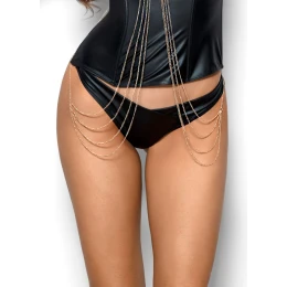 Stringy Brasiliana V-8325 jsou vyrobeny z jemné matné látky imitující latex. Hedvábně černá barva zdůrazní hebkost vaší pokožky. V kompletu korzet V-8327 a tělový řetízek V-8326. Tento komplet je potěšením pro smysly. Materiálové složení: polyester 77 %, polyamid 17 %, bavlna 4 %, elastan 2 %