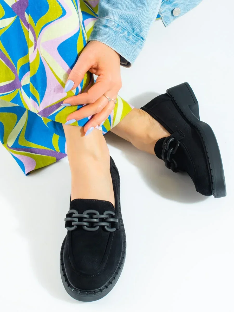 Stylové černé mokasíny dámské na plochém podpatku