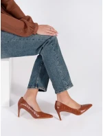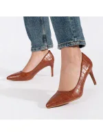 Stylové hnědé dámské lodičky na jehlovém podpatku