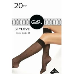 Vzorované podkolenky s jemnými černými tečkami, pohodlným žebrováním a zesílenými prsty.