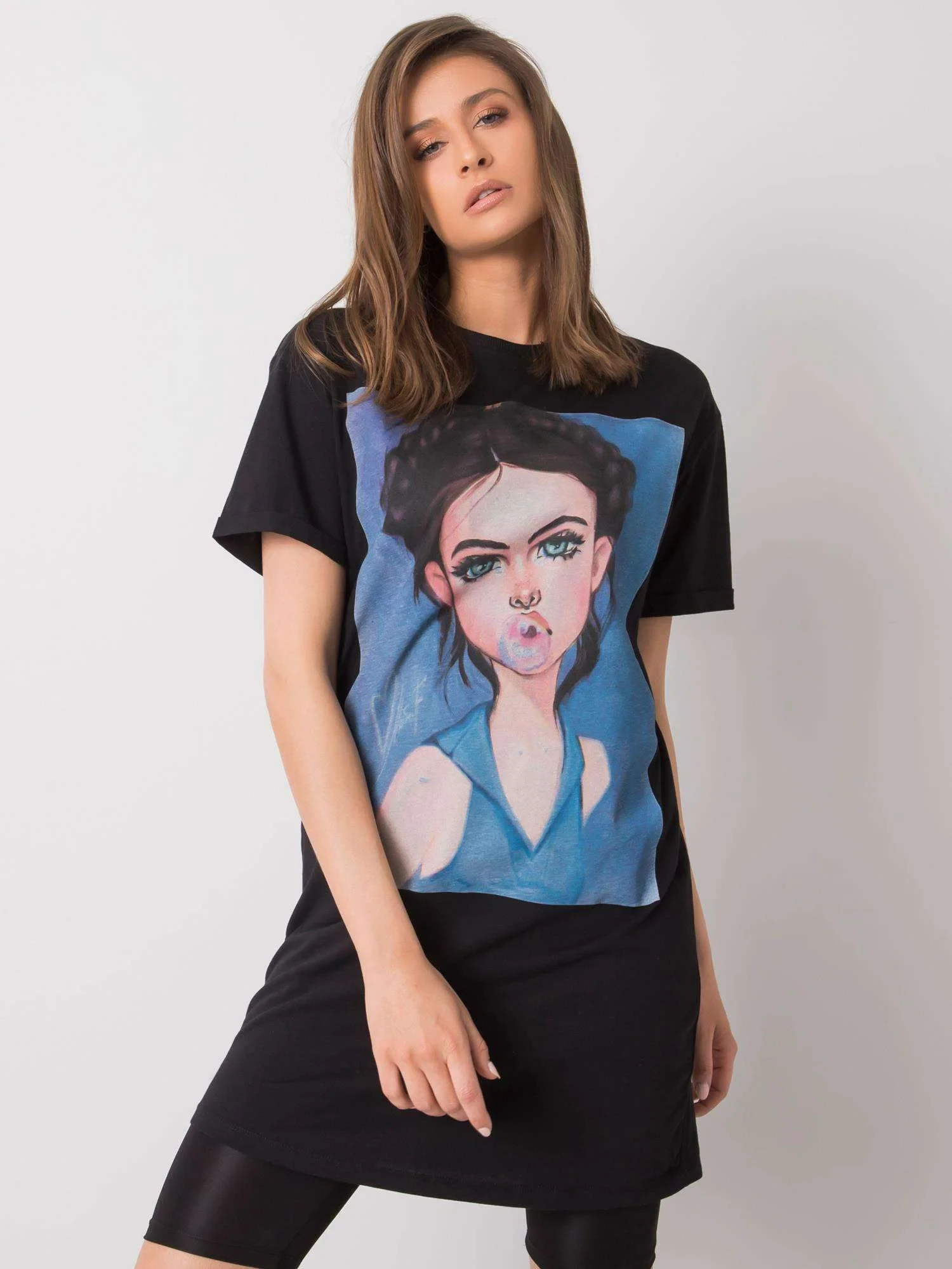 SUBLEVEL Černá bavlněná tunika s potiskem.