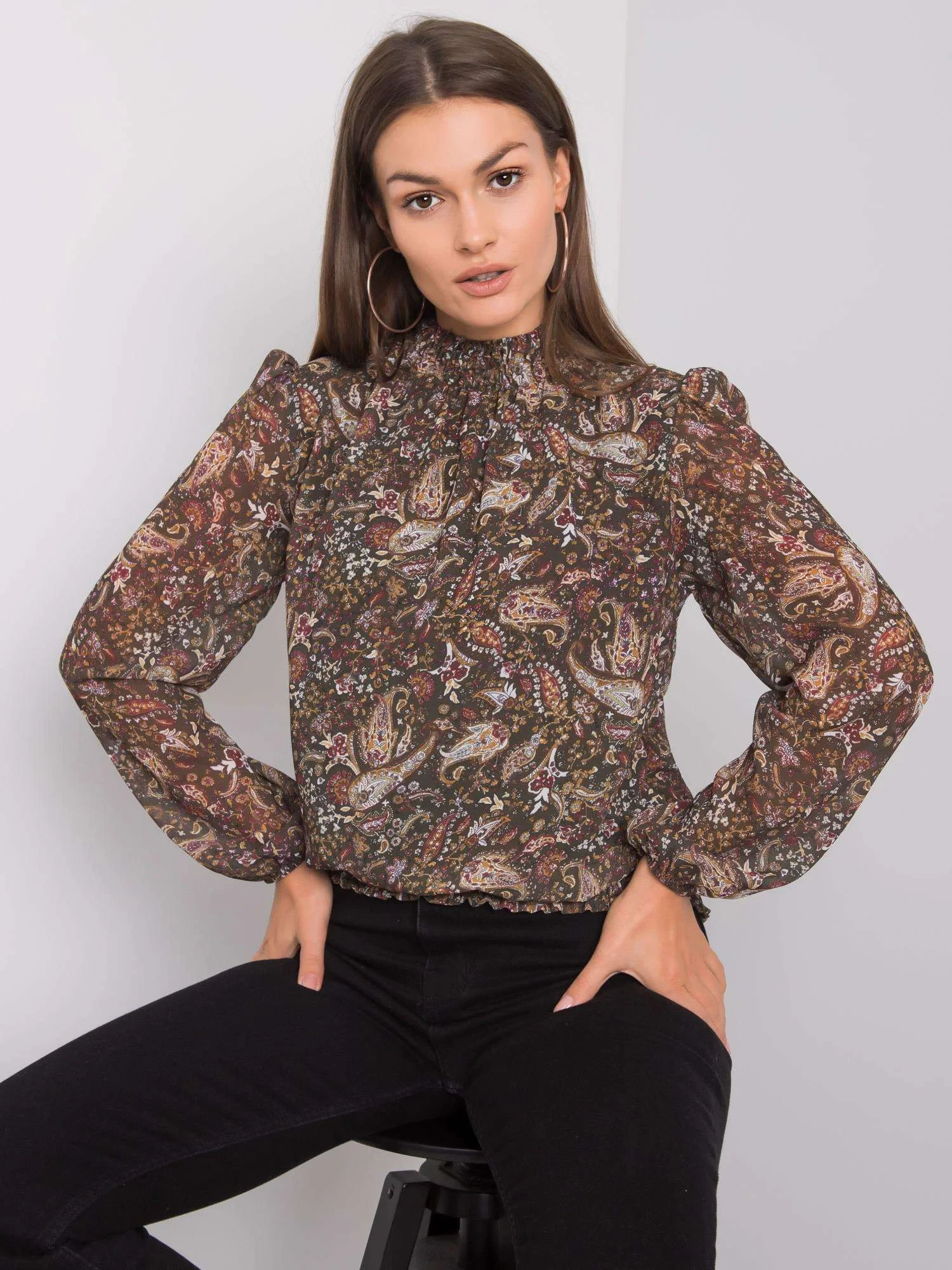 SUBLEVEL Tmavě zelená vzorovaná halenka.