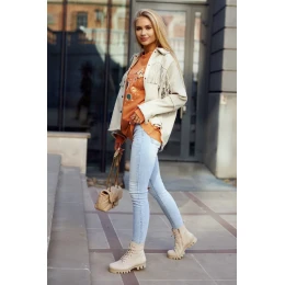 Boty namontované na silné platformě s vysokým běhounem. Přední část špičky je navíc vyztužena gumovým materiálem. Zapínání na vnitřní straně svršku na zip a navíc šněrování. Vyrobeno z měkkého ekologického semiše s bočním prošíváním. Vyztužený počítadlo paty. Skvělý look vytvoří s klasickými džínami nebo joggery, ale i s pletenými šaty. Při výběru velikosti použijte tabulku velikostí.
