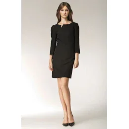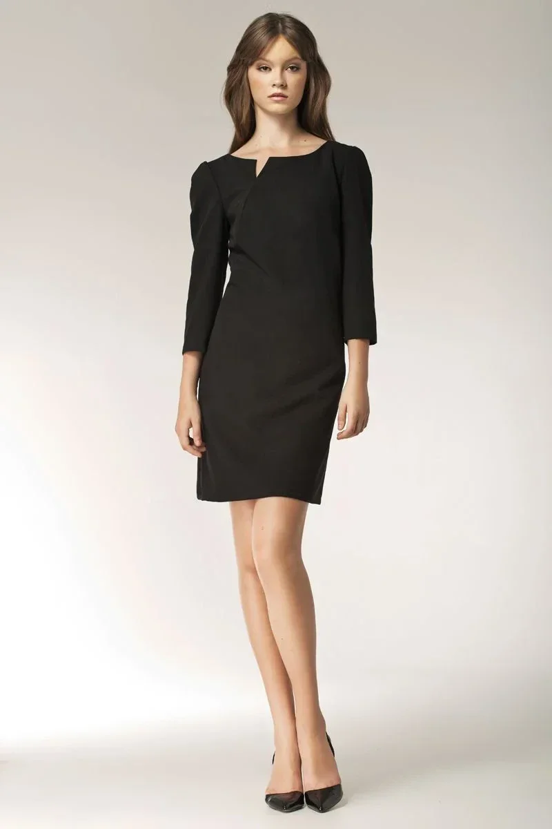 Tyto jednoduché, ale přesto ženské šaty, které jsou skvělou volbou pro chladnější dny, dodávají šatům nádech sex-appealu. Hladká, dobře padnoucí látka, pěkně zakrývá bříško a dlouhé rukávy jsou ideální pro podzim a zimu. Nápadný výstřih se zajímavým trojúhelníkovým střihem odkazuje na retro styl. Černý odstín je nestárnoucím hitem!