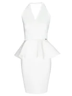 Elegantní šaty s kosticí. Jednoduchý tvar s efektním zakončením kolem poprsí jim dodává znamenitý charakter. Překrývající se výstřih, velmi pěkný. Spodní díl ve tvaru tužky, působí tvarovaně a žensky. Zadní výstřih a kryté zapínání na zip. 100% polyester.