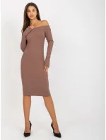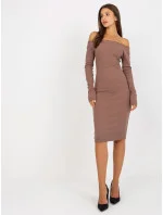 Hnědé základní šaty pro každodenní nošení odhalující ramena .