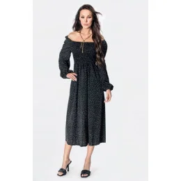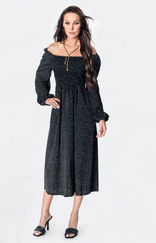 Černé dámské puntíkované šaty ve španělském stylu s dlouhými rukávy Ann Gissy (DLY016)
