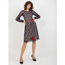 Námořnicky modré krajkové koktejlové šaty se záplatami .
