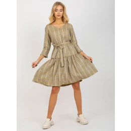Světle žluté elegantní šaty s kostkovaným volánem .