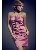 Jemné šaty pro zvláštní příležitosti, které zajímavě ozdobí vaše tělo. Elegantní a vypasované, v přední části smyslně řasené, díky čemuž vám zůstanou dlouho v paměti. Šaty dokonale zdůrazní vaši postavu a dodají vám žádoucí tvar přesýpacích hodin. Odhalená ramena vám dodají smyslný charakter. Prošívání na poprsí koketně doplňuje vzhled. Jemně elastické a dostupné v mnoha barvách.