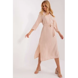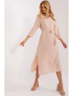 Šaty rovného střihu s 3/4 rukávy, zavazováním v pase a bočními rozparky. Návrh na každodenní nošení i mimo něj.