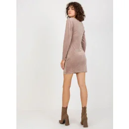 Tmavě béžové velurové mini koktejlové šaty RUE PARIS .