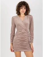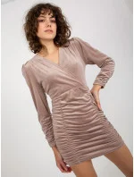Tmavě béžové velurové mini koktejlové šaty značky RUE PARIS .