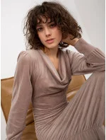 Tmavě béžové velurové koktejlové šaty s řasením od RUE PARIS .