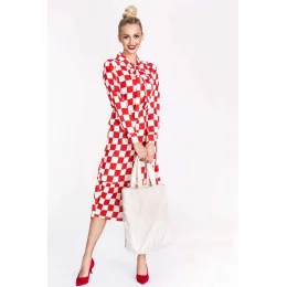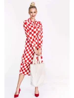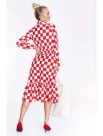 Bílo-červené dámské kárované šaty s vázáním ve výstřihu Ann Gissy (XY202117)