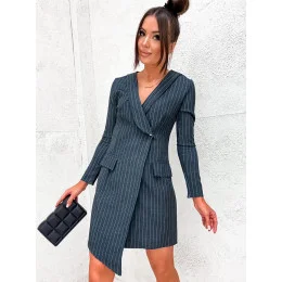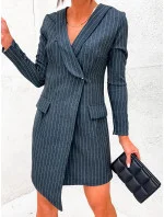 Šedé žebrované pruhované šaty ve stylu saka (8240)