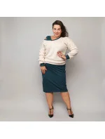 Blůza má výstřih ve tvaru písmene "V" a je olemovaná stahovacími lemy. Model má délku k bokům.