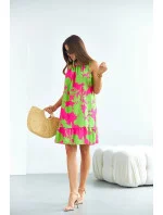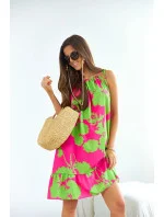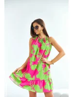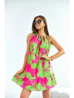 Šaty mají jednoduchý střih, délku mini a mají pásek pro zavazování. Model se zavazuje za krkem ramínky.