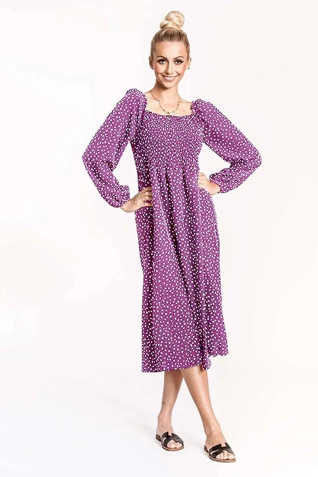 Fialové dámské šaty se spuštěnými rameny Ann Gissy (DLY018)
