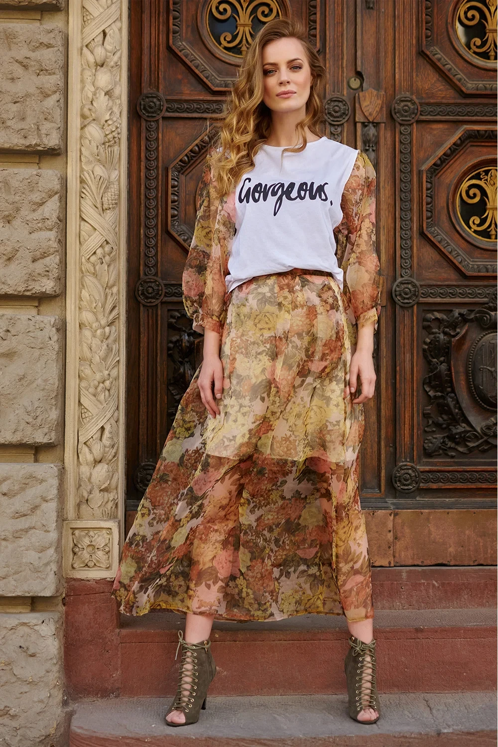 Tylové sukně v maxi délce s krátkým viskózovým polopřiléhavým střihem jsou ideální volbou pro dámy, které rády zdůrazňují svou ženskost. Sukně vypadá skvěle v kombinaci s volným dámským svetrem, stejně jako s jednoduchým klasickým topem. Lze je nosit také s bavlněnou halenkou s bufetovými rukávy a ladícím tylem na sukni. Díky květinovým potiskům působí sukně velmi romanticky a jarně. Skládá se ze dvou vrstev: viskózového polopraporu a vrchní vrstvy průhledného květinového tylu. Díky silnému pásku zapínanému v pase sukně dokonale padne a zvýrazní nejužší část těla. Dlouhý tyl v kombinaci s krátkou krycí spodničkou dokonale tvaruje siluetu a zakrývá případné nedostatky, které jsou nejčastěji vidět na stehnech. Boho sukně je absolutním hitem posledních měsíců. Vítány jsou zde všechny doplňky, jako jsou letní boty, háčkovaná pláštěnka nebo velký klobouk. Tato sukně je ideální pro milovníky kreativních a nadčasových outfitů.