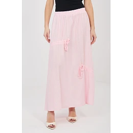 Dlouhá dámská sukně v casual stylu, ideální pro každodenní stylizace. Její hladký vzor dělá z ní univerzální a snadno kombinovatelnou s různými kousky oblečení, od lehkých blůz po klasické košile nebo topy. Model je vyroben z vysoké kvality směsi lyocellu, bavlny a lnu, díky čemuž je materiál lehký, prodyšný a příjemný na nošení. Přírodní vlákna zajišťují, že sukně je ideální zejména v teplejších dnech, poskytujíc pohodlí po celý den. Sukně má elastický gumový pásek, který zaručuje pohodlné přizpůsobení se postavě a volnost pohybu. Absence klasického zapínání zajišťuje, že model je snadný a rychlý na oblékání. Ozdobné šněrování na přední straně dodává celku decentní, ženský charakter a představuje stylový akcent dokončení.