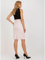 Světle růžová tužková sukně s vysokým pasem .