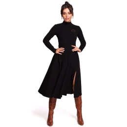 Midi sukně s rozšířeným střihem a rozparkem na boku. Vyrobeno z tenkého úpletu s přídavkem elastanu. V pase jsou elastické. K různým outfitům je můžete kombinovat s botami na vysokém podpatku nebo sportovními teniskami.