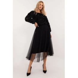 Tylové sukně v midi délce, ideální na každodenní nošení i na události, kombinující ležérní styl s nádechem elegance. Sukně je vyrobena z lehkého polyesteru a má hladký vzor, který jí dodává jemný a univerzální vzhled. Tylový materiál v kombinaci s rozšířeným střihem vytváří lehký a vzdušný efekt, ideální pro různé příležitosti. Pružný pas zajišťuje pohodlné nošení, takže sukně je nejen stylová, ale také pohodlná. Podšívka pod tylem dodává nositelce větší pohodlí, takže se sukně skvěle hodí ke každodennímu i formálnějšímu oblečení.