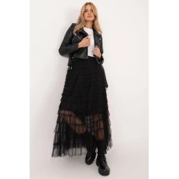 Elegantní tylová sukně s volány je stylovým návrhem jak na každodenní vycházky, do práce, tak i na slavnostní příležitosti nebo večírky. Vyrobená z lehkého polyesteru, má hladký vzor a midi délku, co jí dodává ženský a elegantní vzhled. Jemné volány dodávají sukní romantický charakter a zdůrazňují její elegantní styl. Bez zapínání a elastický pas zajišťují pohodlné nošení, a podšívka zaručuje pohodlí a zabrání průsvitnosti. Jedná se o výjimečnou sukní, která spojuje decentní eleganci s praktičností, ideální na různé příležitosti.