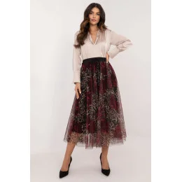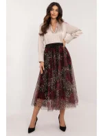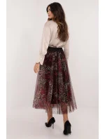 Krátká sukně s asymetrickou přední částí, doplněná páskem na zavazování.