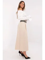 Krátká sukně s asymetrickou přední částí, doplněná páskem na zavazování.