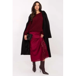 Elegantní sukně ve tvaru syreny vyrobena z látky s různorodou fakturou je ideální volbou jak na každý den, tak i na formální události. Vyrobená z vysoce kvalitní směsi polyesteru, viskózy a elastanu se krásně přizpůsobuje postavě, zdůrazňující ženské tvary. Elastický pásek v pasu zajišťuje pohodlné nošení a perfektní přizpůsobení bez nutnosti zapínání. Bez zapínání je sukně mimořádně pohodlná a snadno se obléká. Jemný krajkový výstřih na levé straně dole dodává celku jemný, ženský charakter a zdůrazňuje elegantní styl modelu. Midi délka a lehce rozšířený dolní lem ve stylu syreny dělají sukně skvěle sladitelnou jak s košilí do práce, tak s elegantní blůzou na schůzku nebo večírek.
