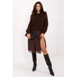 Elegantní midi sukně s klasickým ženským střihem, ideální jak na každý den, tak i na více formální události. Vyrobená z vysoce kvalitní látky s přídavkem elastanu, která jemně kopíruje postavu, poskytuje pohodlí a volnost pohybu. Model má vsazený gumový pas, díky čemuž skvěle sedí a není potřeba zapínání. Rozpark dole jemně zdůrazňuje nohu, a krajkové dokončení dodává celku eleganci a jedinečný charakter. Suka v hladkém vzoru je univerzální volbou, která se skvěle hodí do práce, na schůzky i na speciální události.