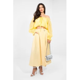 Tato elegantní midi sukně je ideální kombinací klasiky a pohodlí, skvělá na každodenní nošení, do práce nebo na více formální události. Vyrobená z vysoce kvalitní směsi polyesteru a elastanu poskytuje pohodlí při nošení, trvanlivost a krásné padání materiálu. Model s hladkou strukturou se vyznačuje zepředu plisovaným lemem, který dodává lehkost a ženský charakter. Na zádech je vsazena guma, díky které se sukně perfektně přizpůsobí postavě a poskytuje pohodlí po celý den. Další výhodou jsou boční kapsy a ozdobné knoflíčky, jemně zdůrazňující elegantní styl modelu. Bez zapínání je sukně mimořádně praktická a snadná na nasazení. Jedná se o univerzální kousek šatníku, který se skvěle hodí jak do kancelářských outfitů, tak i na formální události.