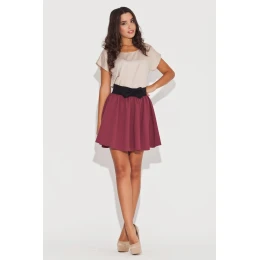 Extrémně okouzlující návrh. Stručně řečeno, rozšířený sukni s páskem v kontrastní barvě. Model zdobil předek dívčí luk. Mini délka, odhalující lákavé nohy.