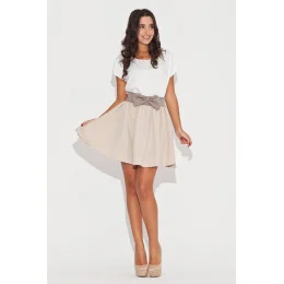 Extrémně okouzlující návrh. Stručně řečeno, rozšířený sukni s páskem v kontrastní barvě. Model zdobil předek dívčí luk. Mini délka, odhalující lákavé nohy.