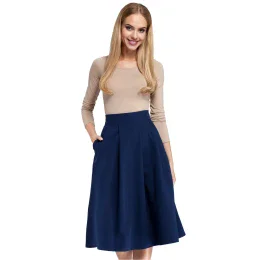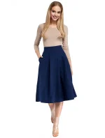Mírně rozšířená sukně ke kolenům s tvarujícími záhyby je ženským a stylovým kouskem šatníku. Boční kapsy dodávají střihu na objemu a rozhodně jsou také pohodlné.