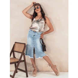 Sukně STELLIS je variantou, se kterou můžete vytvořit množství looků, jak ležérních, tak náročnějších. Má rozparek ve spodní části přední strany. Je vyrobena z měkkého denimu, díky čemuž krásně zvýrazňuje siluetu a je mimořádně pohodlná.