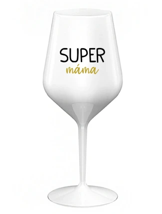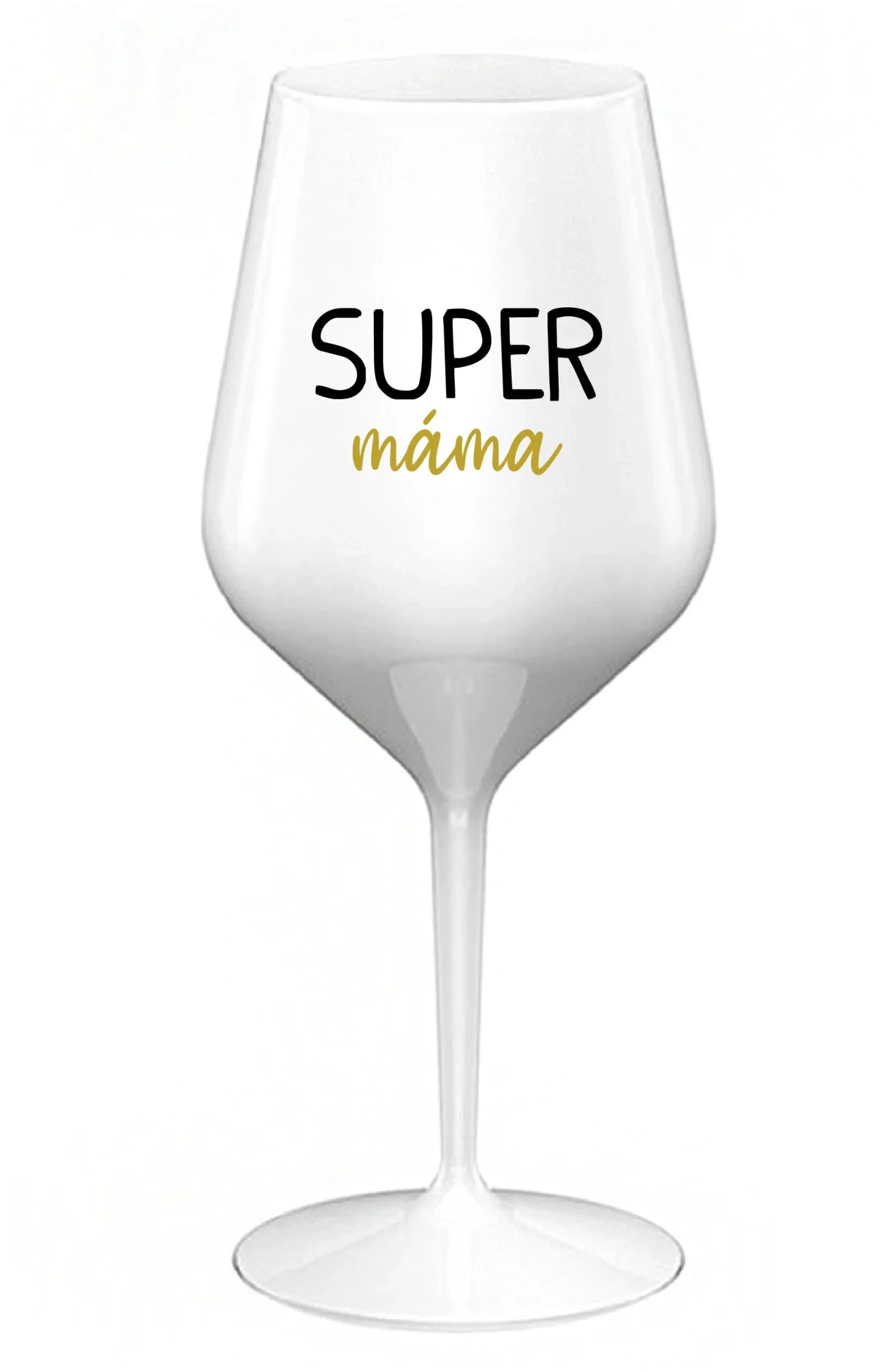SUPER MÁMA - bílá nerozbitná sklenice na víno 470 ml