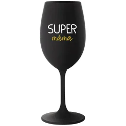 SUPER MÁMA - černá sklenice na víno 350 ml