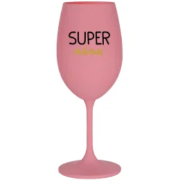 SUPER MÁMA - růžová sklenice na víno 350 ml